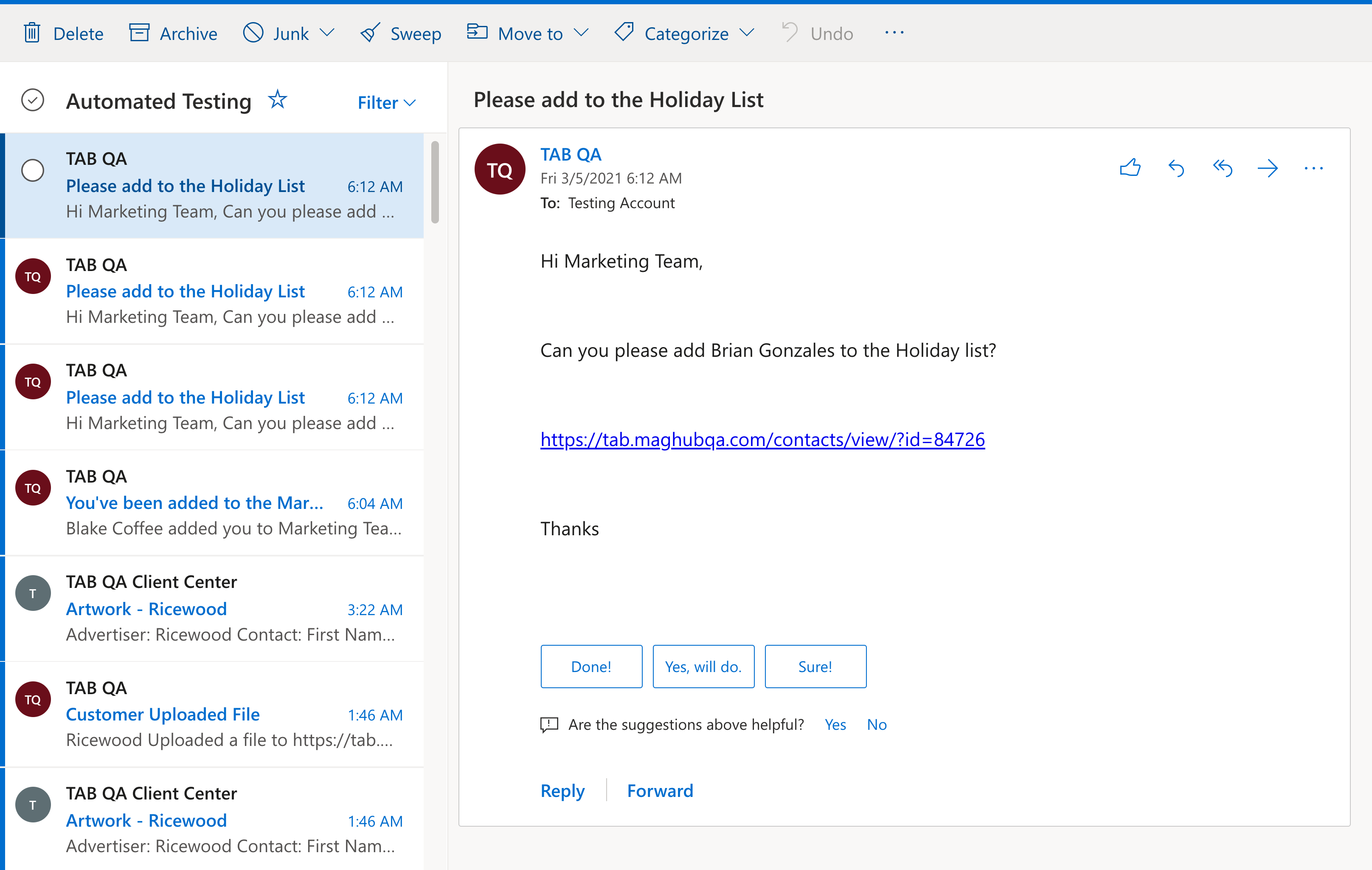 My next step is to send an email to my team so they know to add them to the holiday list.