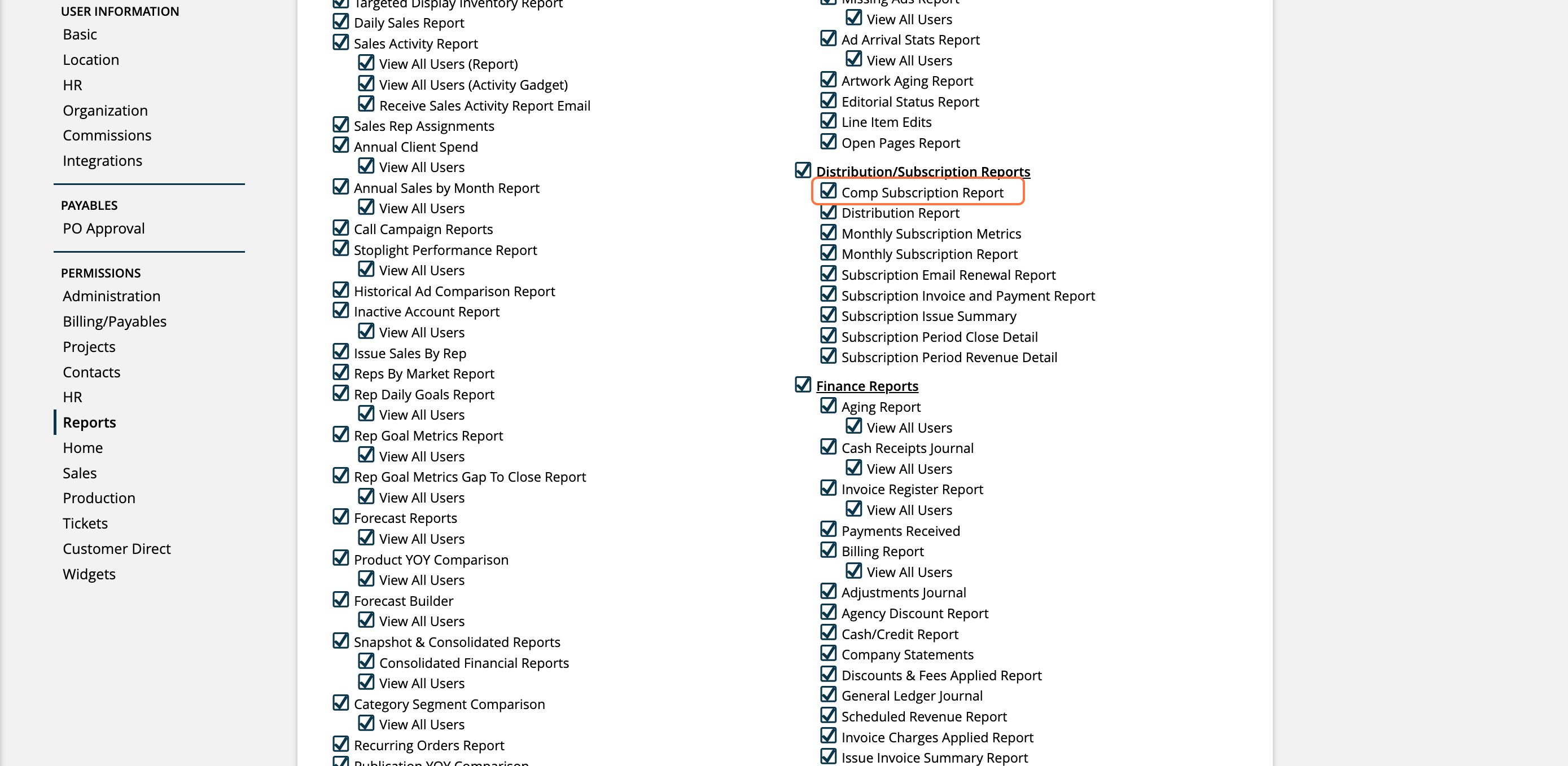 To access the report, you must have the User Permission 'Comp Subscription Report'.