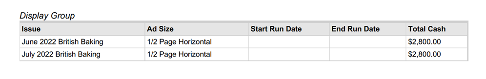 Display groups allow you to group line items together on a contract. The group will show all the line items, but sum the price up into a single total. This will allow you to show the total value of the group without showing how much each item costs. You can update the names of your display groups and determine if those display groups are invoiced together. If the display group items are invoiced together, the invoice will be generated automatically when the order is approved