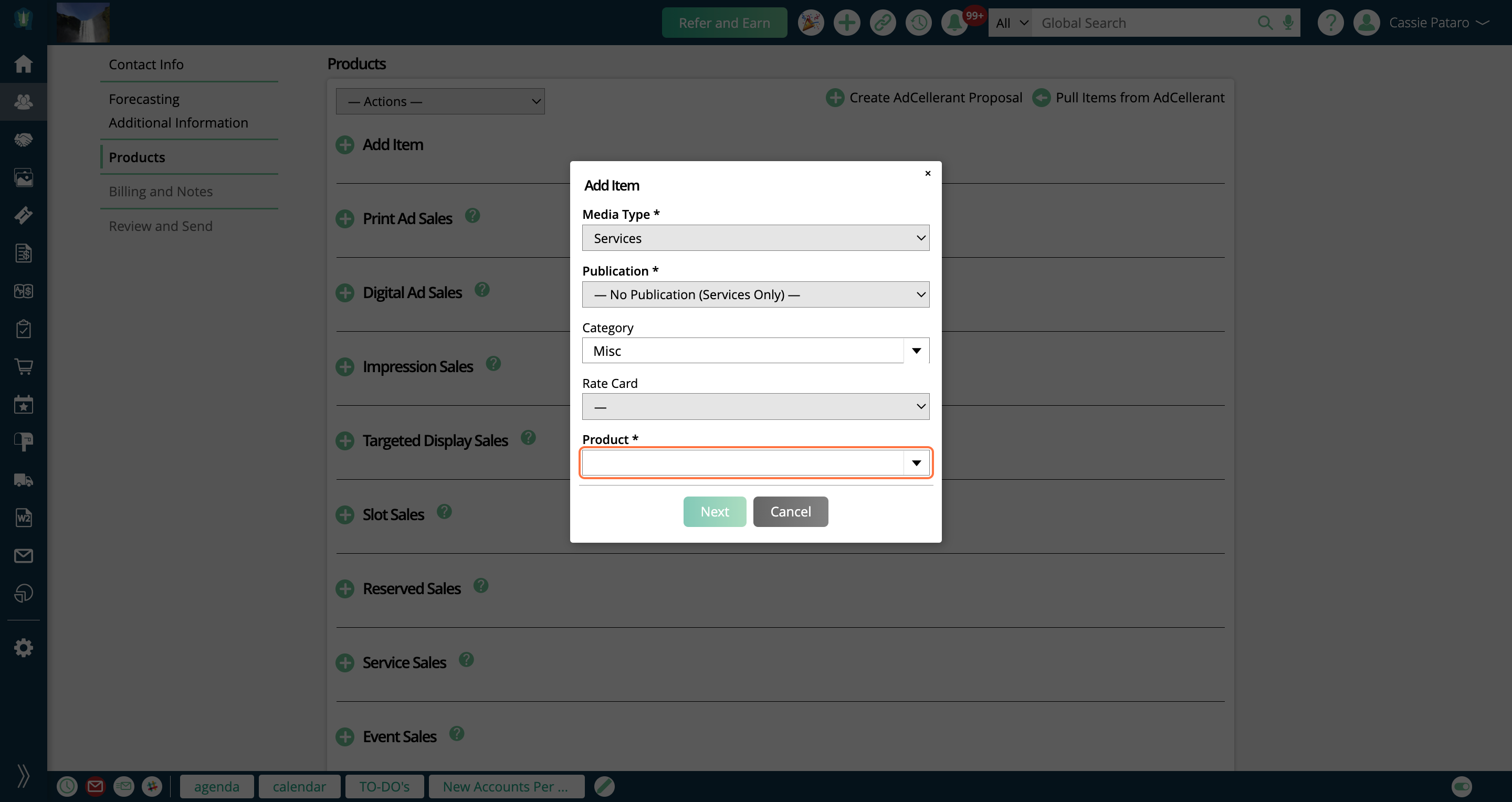 Product - If you did not select a Category, the product list will include every product that falls within every category for that Media Type, filtered by publication and rate card if applicable. If you did select a Category, the product list will only show items included in that category.