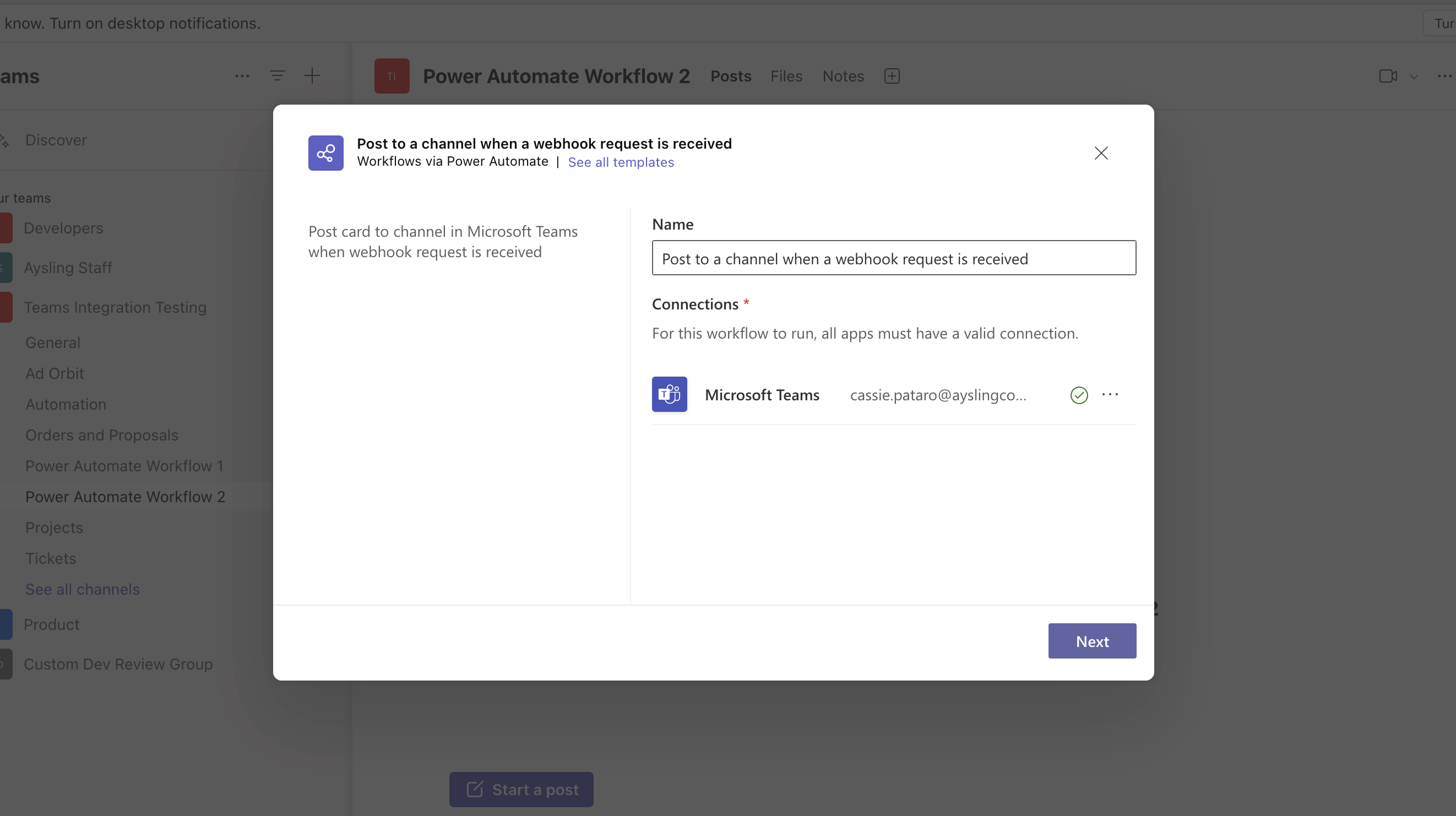 On the following page in the popup, you can choose to give your webhook a name. Click 'Next'.