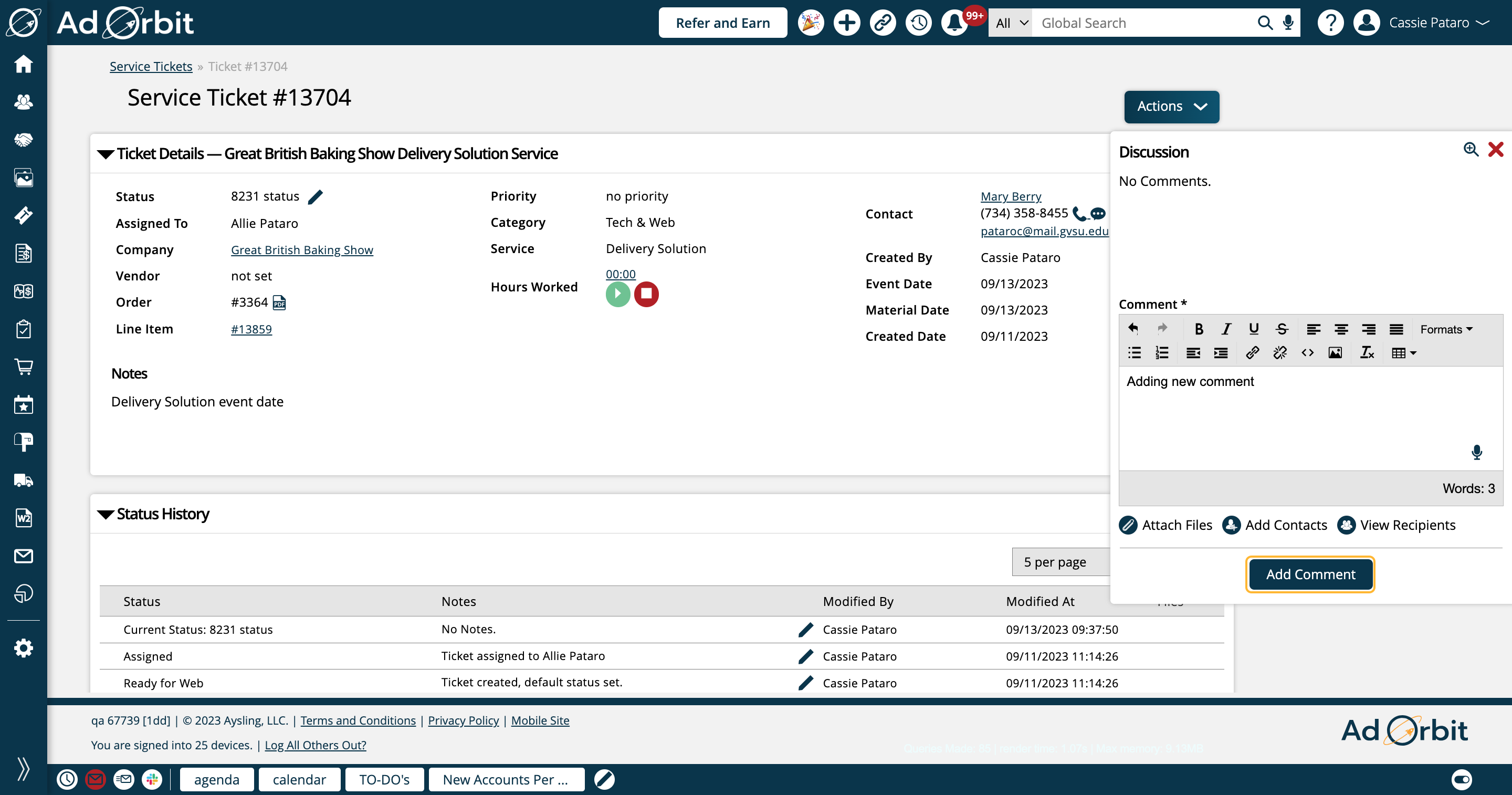 Another unique aspect of Delivery Solution tickets is that you can have a discussion on the ticket. To open the discussion, click on the chat box icons on the right side of the page.