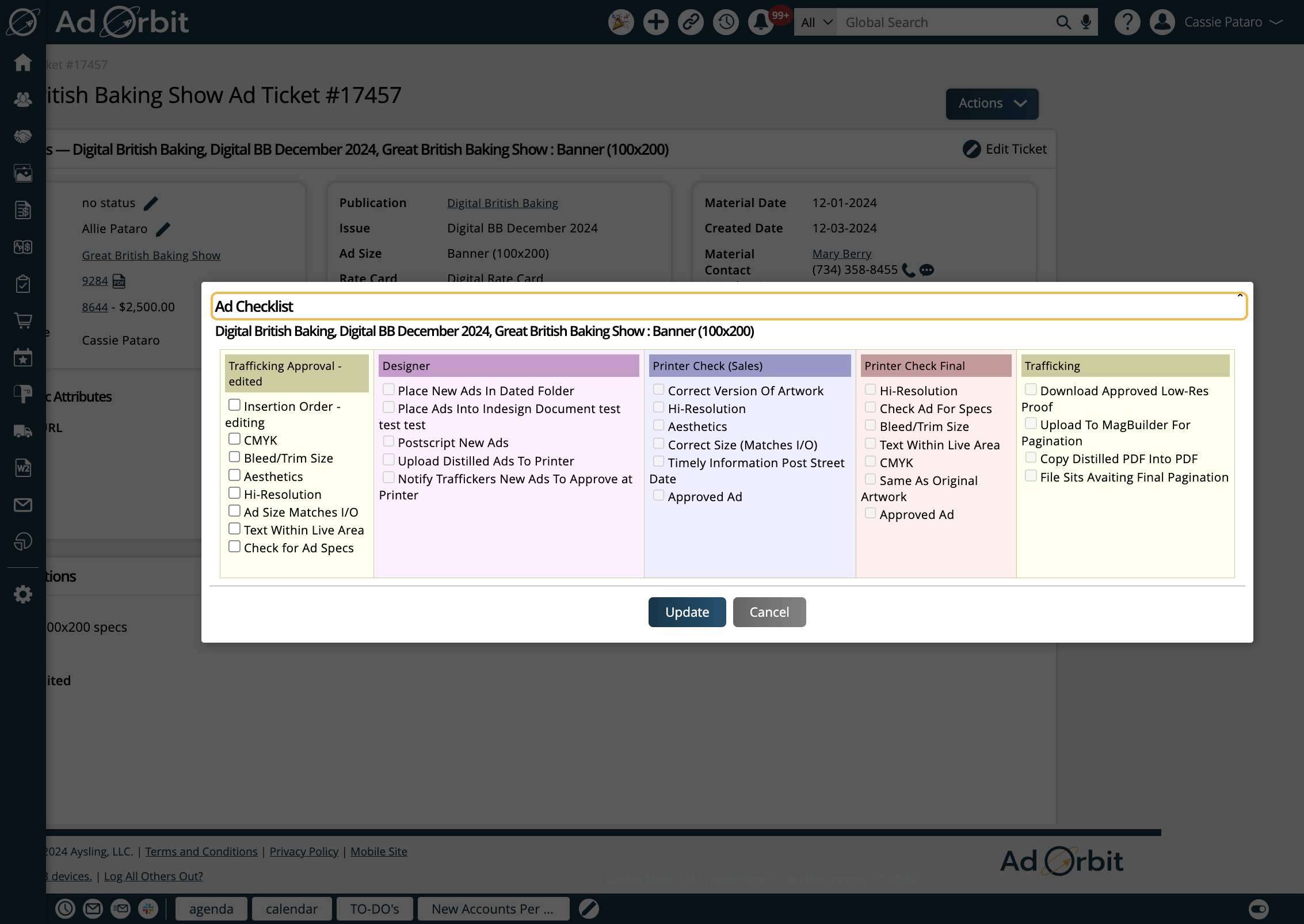 Ad Ticket Checklist