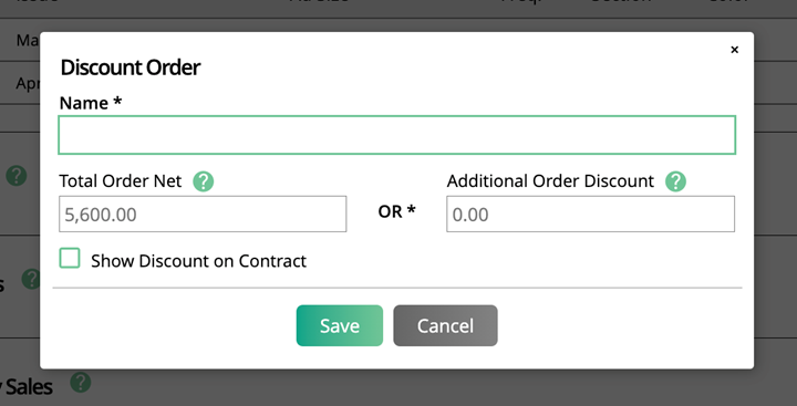 You can quickly add a named discount to every line item on your order. The bulk discount will evenly distribute the discount across all of the line items. You can choose to discount the entire order to a new total or apply a specific discount amount to an order.