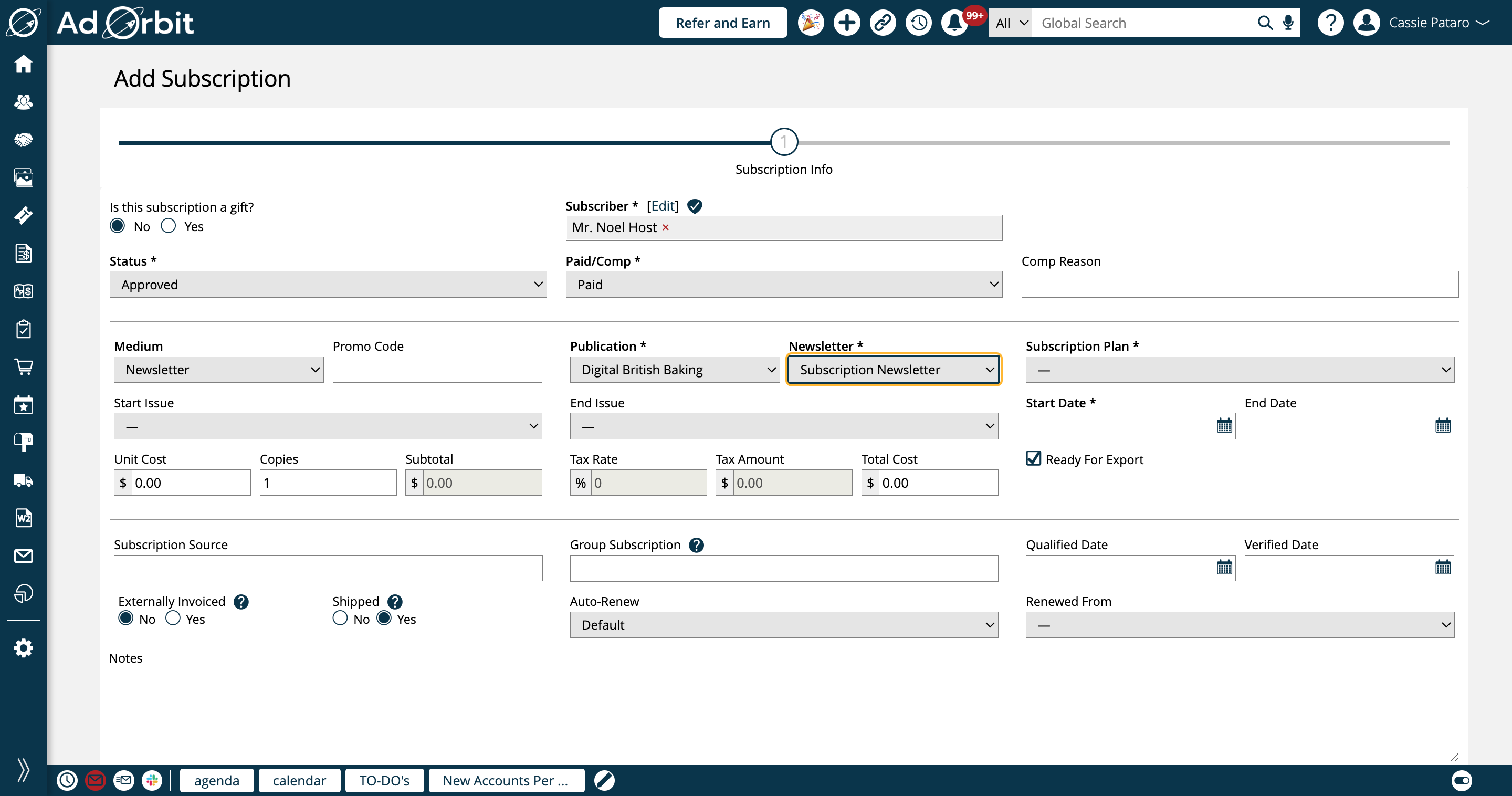 Once you have your products created using Newsletter product categories, you can create Newsletter subscriptions. When creating a new subscription, choose 'Newsletter' in the Medium dropdown.