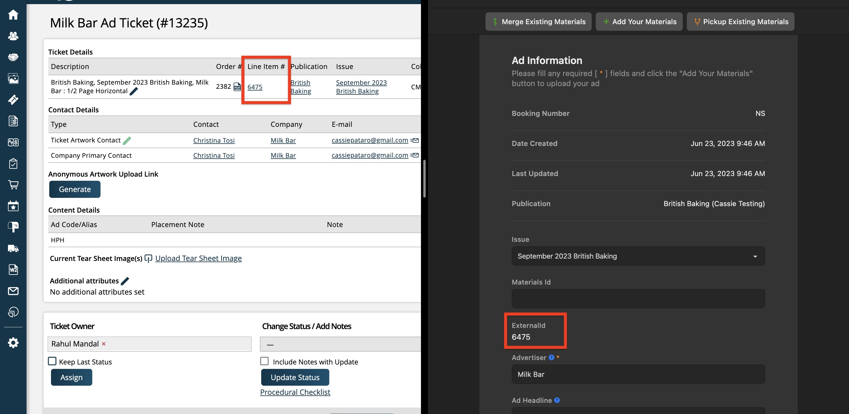 Assets added to synced SendMyAd items will be automatically added as assets to the corresponding Ad Orbit ticket. When synced, the ticket will automatically get the ‘Ad Arrived’ status set.